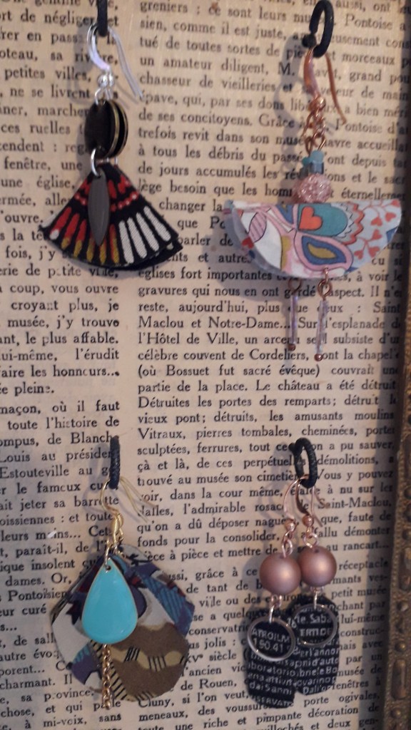 10 € la paire de boucles d’oreille réalisée avec des chutes de tissu