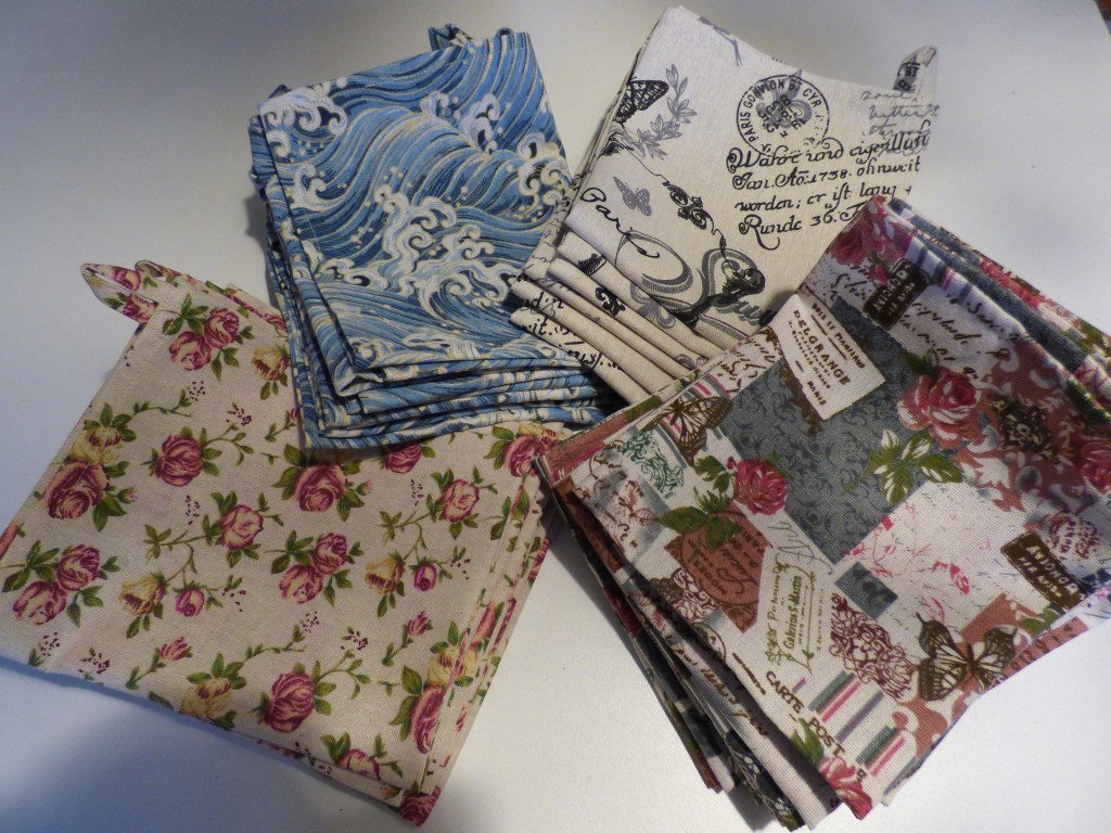 Dimensions : entre 20 x 20 cm et 23 x 23 cm (en fonction de la taille des serviettes, afin de récupérer le maximum de tissu)